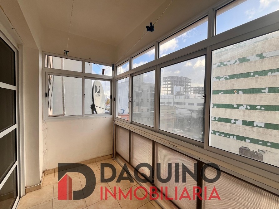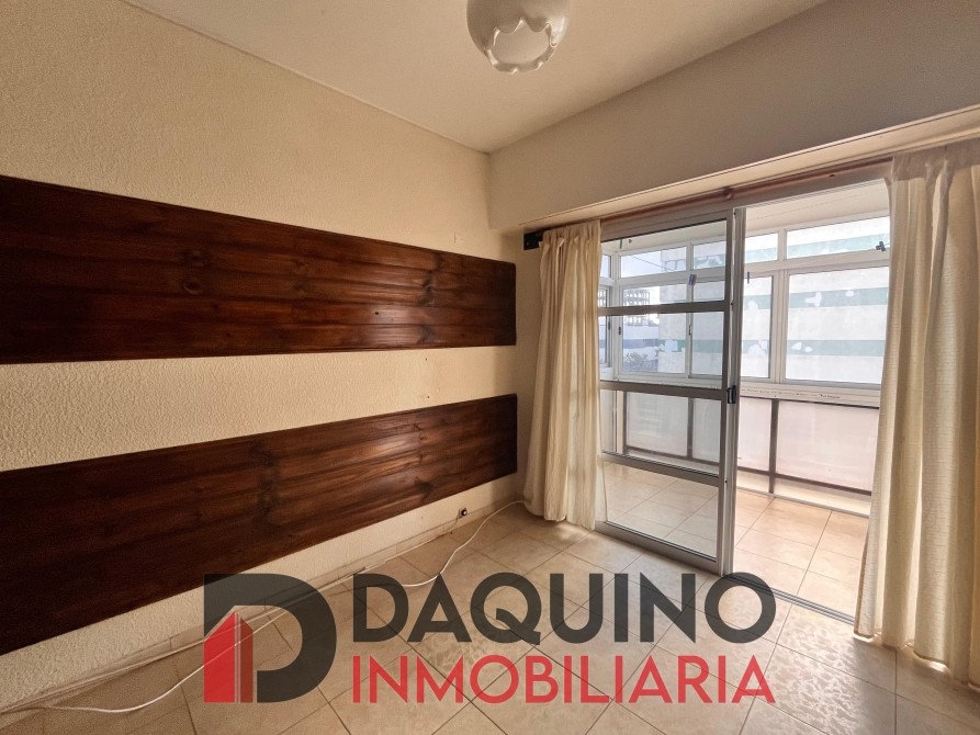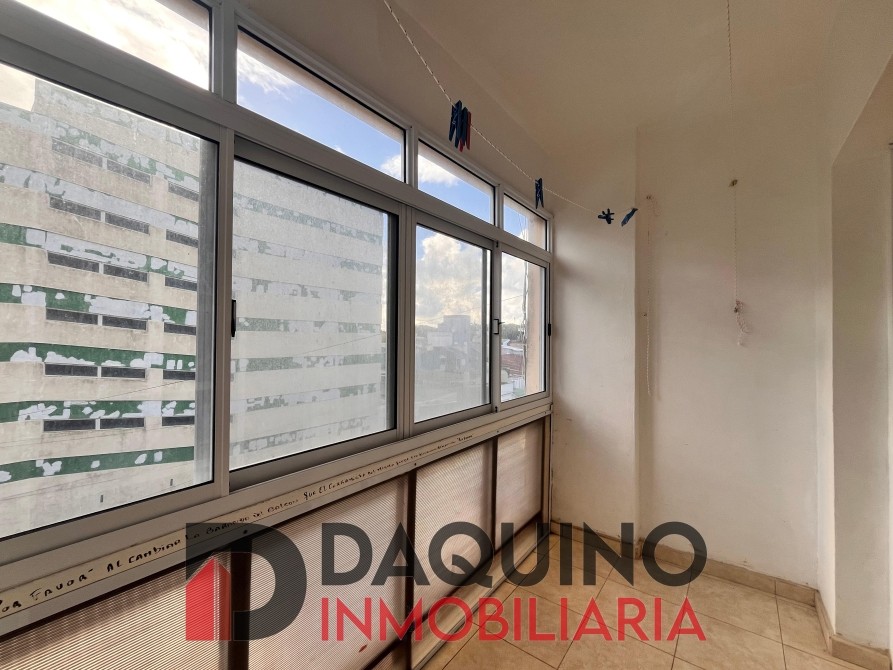 Ambiente único con división para dormitorio, cocina separada, baño completo y balcón con cerramiento de aluminio.